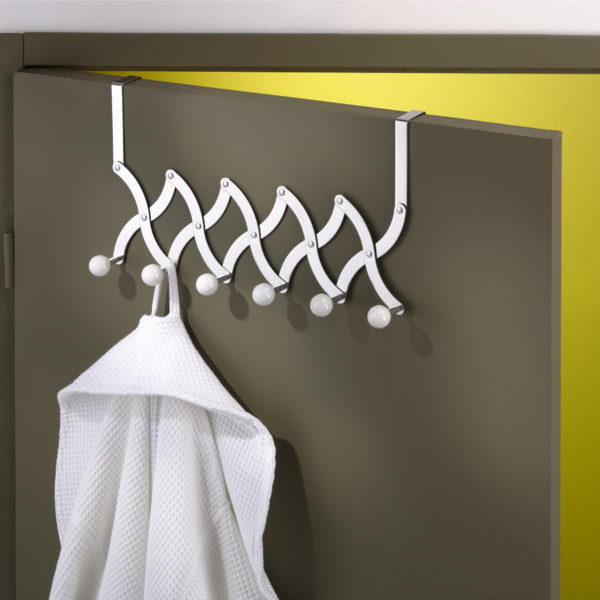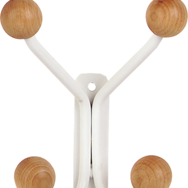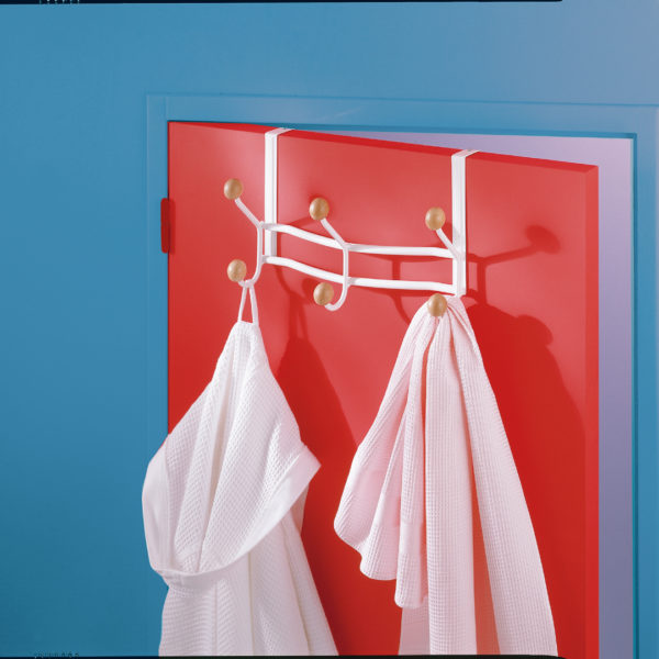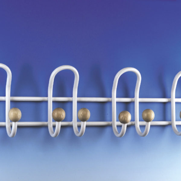 Coat hanger 4 hooks in zamac – white color – gold hooks
