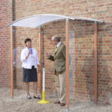 Our awning will protect you from wind and rain, but also to preserve the environment of your company. It installs easily, adapts to your needs and equips various accessories (benches, ashtrays ...) The pillars are in exotic wood, guaranteed 20 years. The roof deck and the roof arch are in galvanized steel. The vertical walls are transparent plexiglass, and polycarbonate roof plate assembly of the shed is done by hardware (provided). Model with two walls plexiglass size 235 x 230 x 120 cm