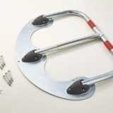 La forme particulière de l’arc de cercle permet d’amener de la souplesse pour couvrir éventuellement les défauts de planéité du sol et permet aussi une plus forte résistance aux coups