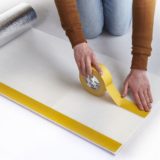 Use double-sided tape (not supplied) on the white side (wall side) to fix the strips on the wall.