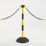 Two attachment points at the top of the stanchion for hanging any type of chain of 6 to 12mm Very good adhesion to the ground, wind resistance 145km / h - Very good stability. Cup of 6.5 kg Total HT 1m - Ø base 36cm - HT base 10.5cm - Ø 50mm aluminum post Post powdery yellow and black