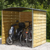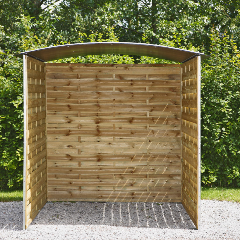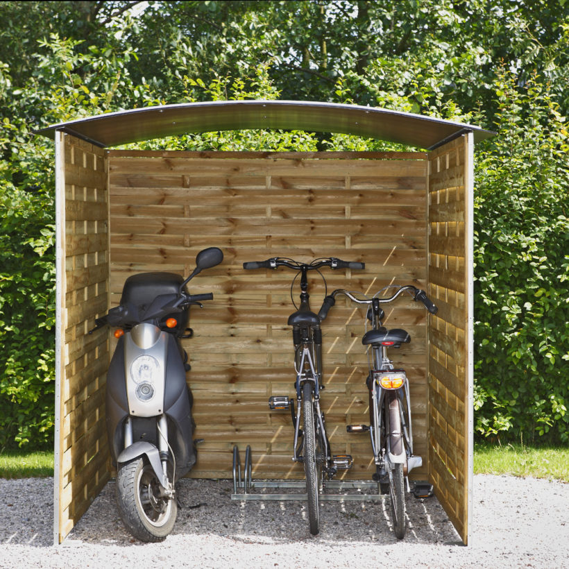 Dieser Fahrradunterstand wird als Bausatz verkauft und enthält 3 Wandplatten aus behandelter Kiefer