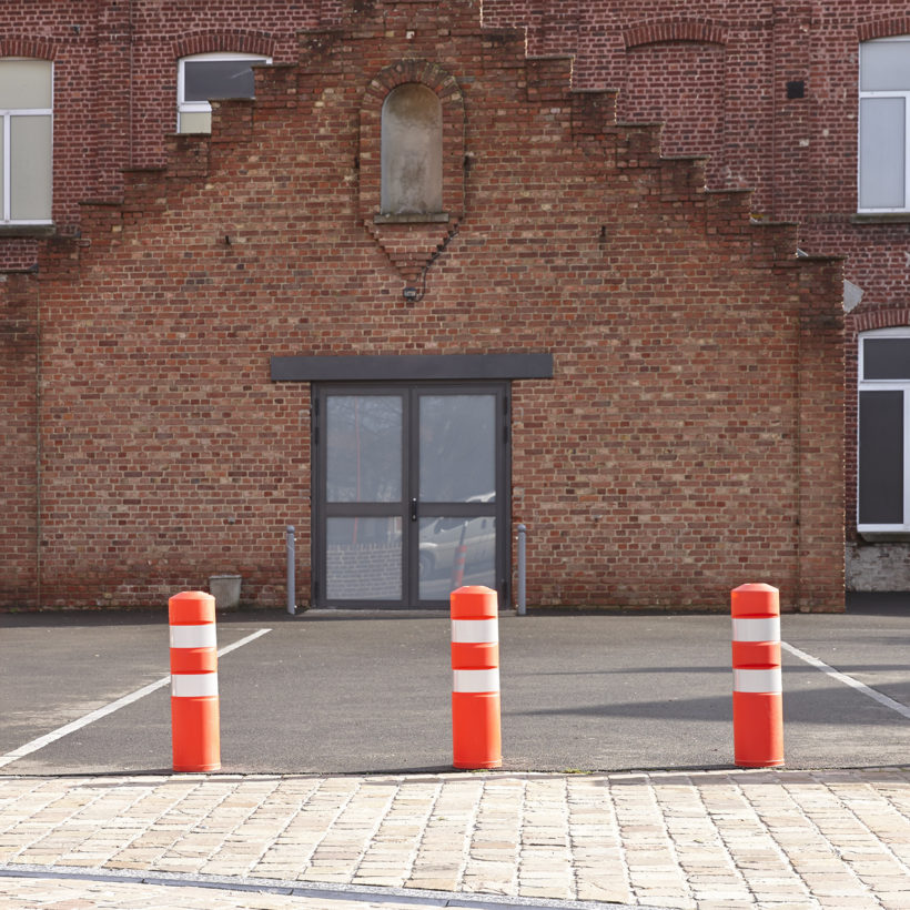 Der Pfosten wird mit einem Metallboden am Boden befestigt