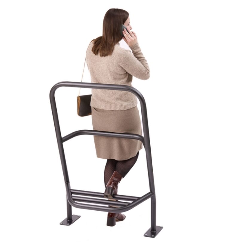Ermöglicht es dem Radfahrer, den Fuß auf die gleiche Höhe wie das Pedal zu stellen, ohne ihn auf den Boden legen zu müssen. Dies fördert einen schnellen und stabilen Neustart bei grünem Licht. In der Zwischenzeit kann sich der Radfahrer mit seiner Hand oder seinem Arm auf den Bügel und dem Fuß auf die Fußstütze stützen.