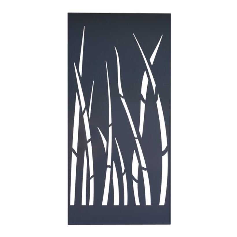 Slatted cladding made of 2 mm thick electro-galvanized steel sheet with anthracite grey (RAL 7016) polyester powder coating.