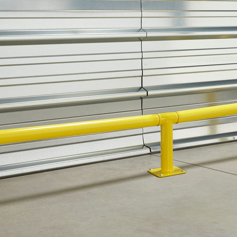 Sweeps Tube Ø60 - Height 30cm - Effective depth 25cm / 35.5cm overall finish powdery yellow rust Floor fixing by plate 150 x 150mm, thickness 5mm, 4 holes Ø11mm - Working length 246cm - Overall Length 258cm Color yellow