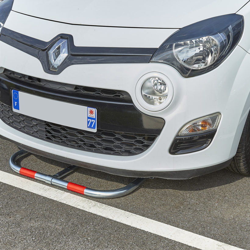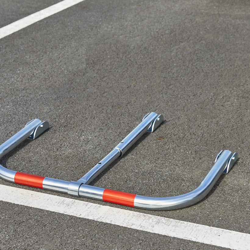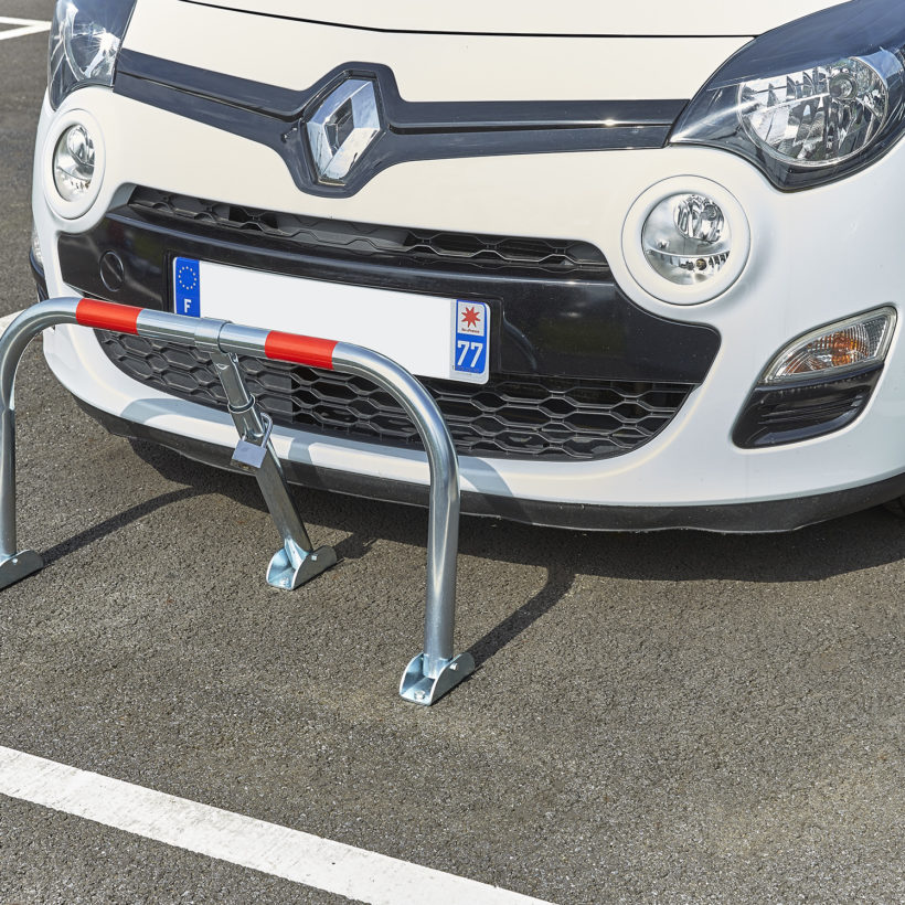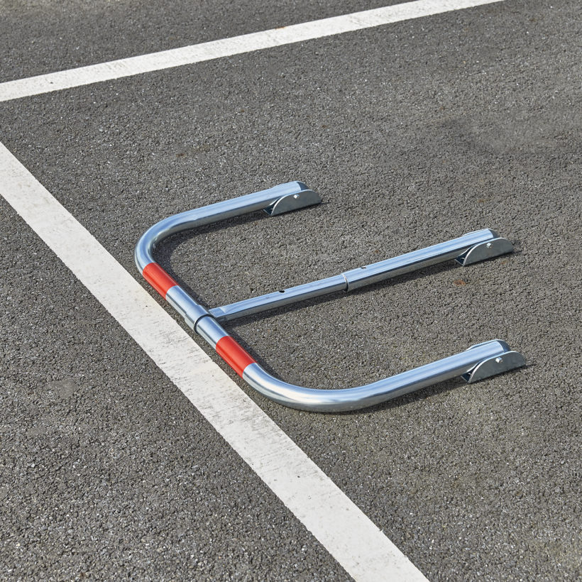Barrière rabattable éco avec 2 bandes rouges de repérage