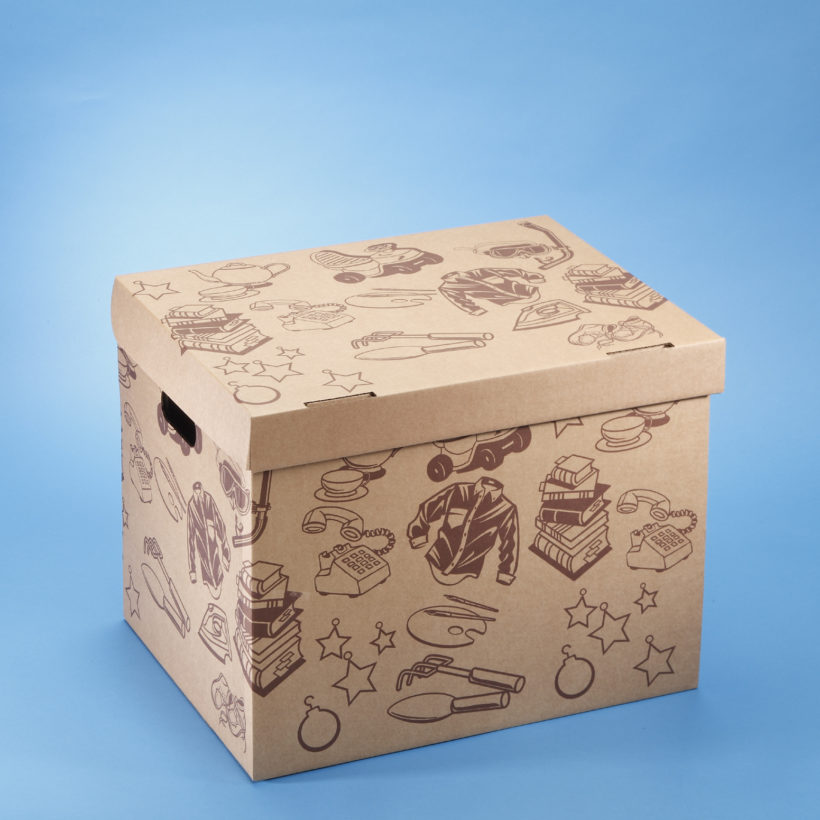 This decorative cardboard will be perfect as a storage box. It can hold 55 liters and support up to 15 kg, more, it has 2 handles so you can move your card very easily. In addition to being practical, it is decorated to fit easily in your home. Three styles are available, allowing the boxes to agree with the different parts of your home. Cardboard single groove 4mm, 8mm or doubled incorporated lid connected to the box by a hinge effective closure object Décor utility, color brown Dimensions: 45 x 35 x 35cm Capacity: 55 liters Maximum weight: 15 kg weight of cardboard: 0.530kg
