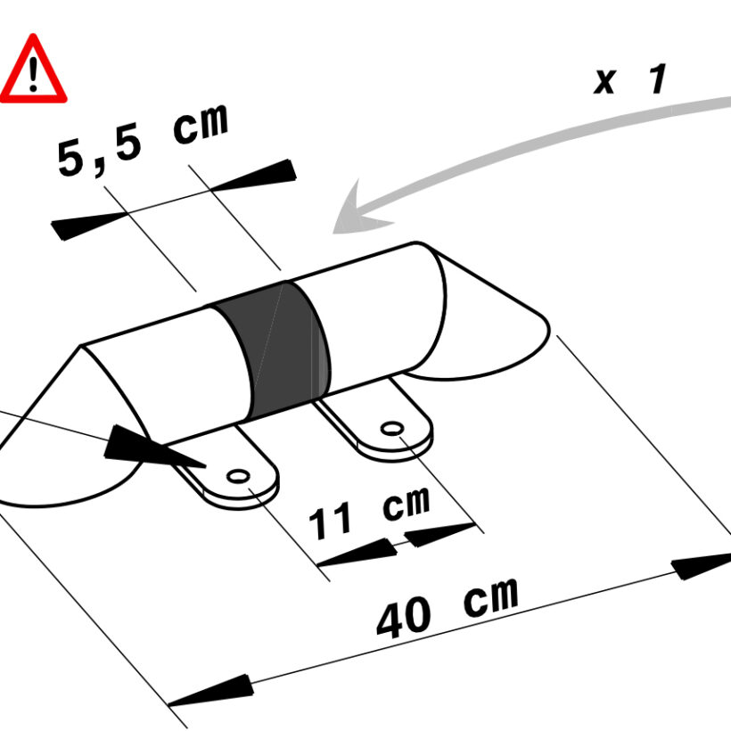 Fixing with 2 plates: Length. 19 cm x width. 5 cm x thick. 8 mm with 13mm fixing holes.