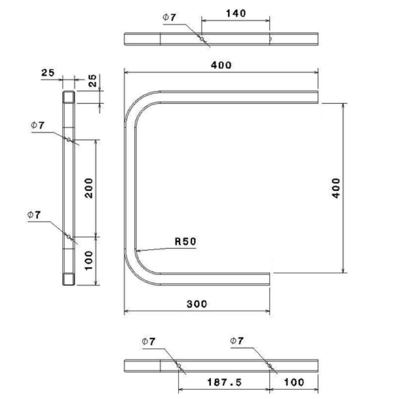 “U” Hook – square tube 25×25 mm length 30/40 cm