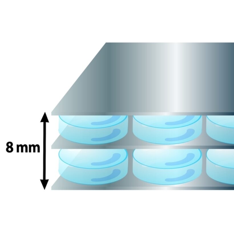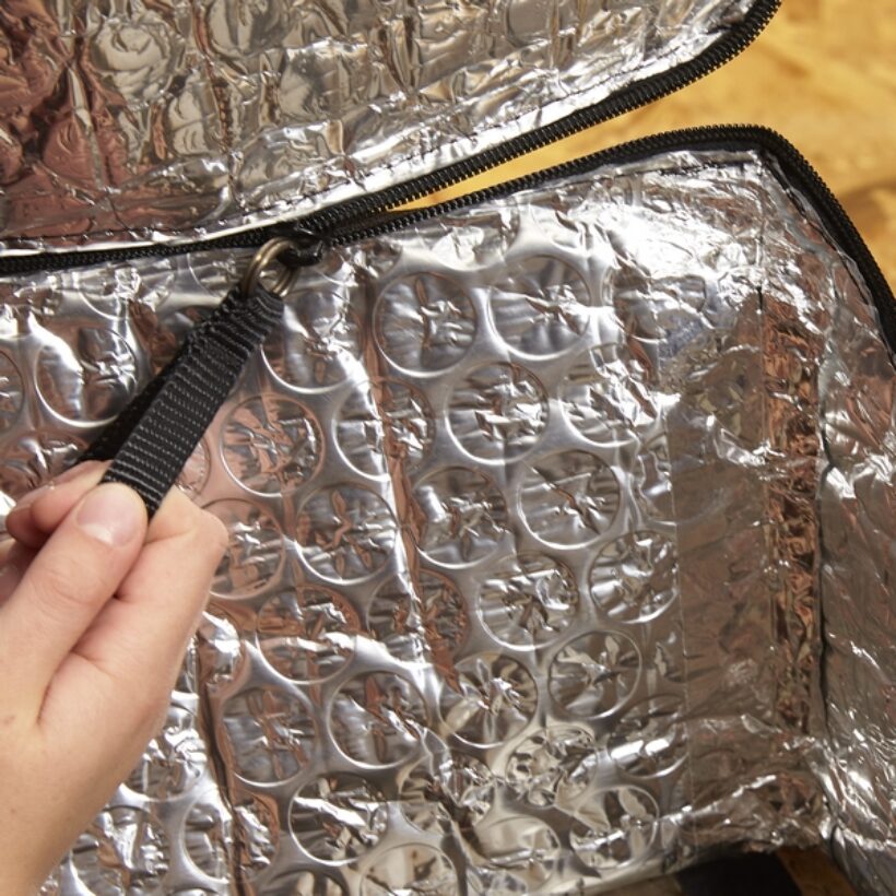 Material : Aluminized insulating foam, 8 mm thick: 5 layers consisting of 2 bubble films (Ø 10 mm of airtight, thermally bonded air) sandwiched between 3 reflective aluminum sheets. Classified M1.