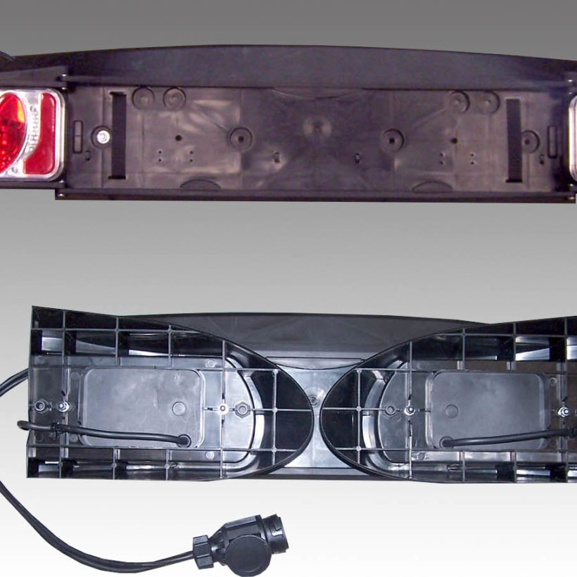 Equipped with 2 lights 6 functions: position, stop, flashing, plate lighting, recoil (D) or fog lamp (G)