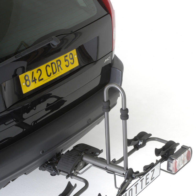 - The sides of the bike carrier platform are foldable: the bike carrier is more compact. It is therefore easier to handle and store!