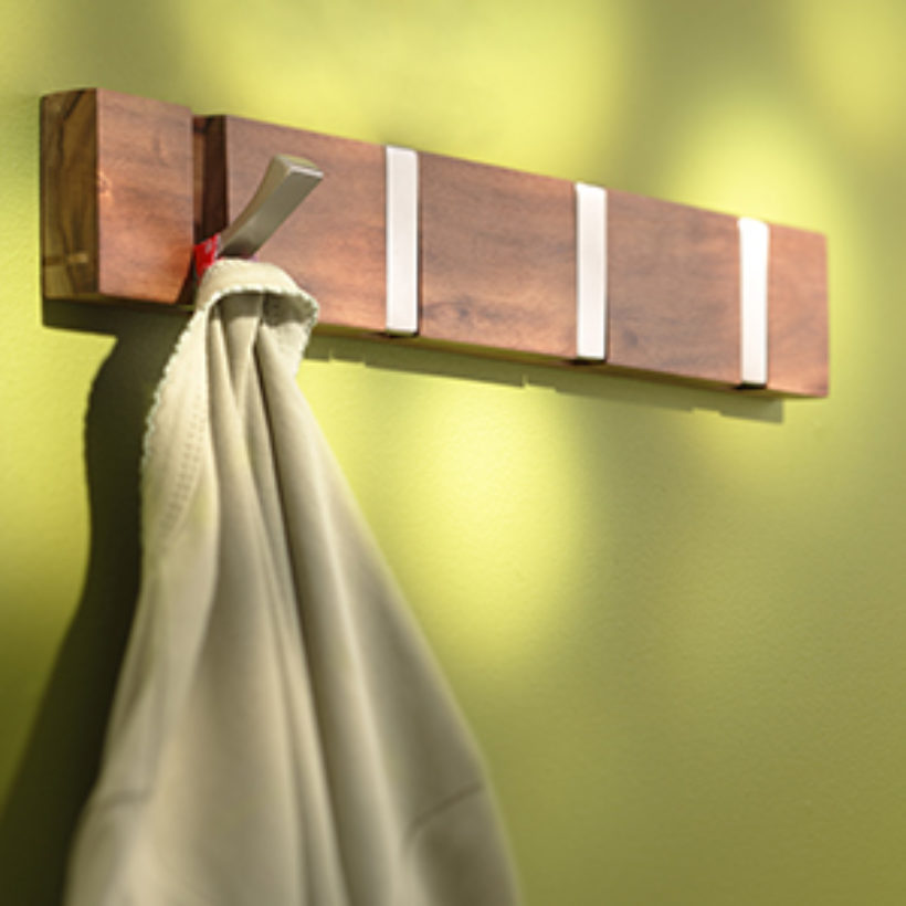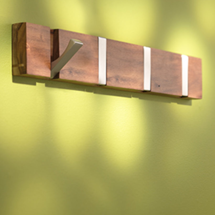 This coat has 2 hooks that flip as you wish for a more sleek design and style. It is teak and rectangular. It perfectly combines the brilliance of nickel metal with the warmth of wood, it will bring a chic touch to your interior decoration. 4 hooks length 42 cm