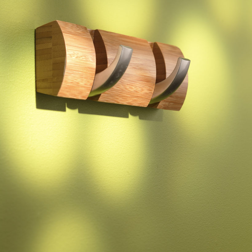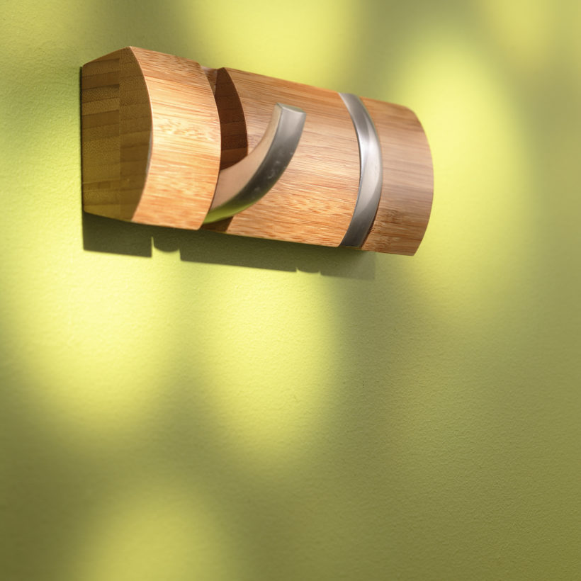 This coat has 2 hooks that flip as you wish for a more sleek design and style. It is bamboo and rounded. It perfectly combines the brilliance of nickel metal with the warmth of wood, it will bring a chic touch to your interior decoration. 2 hooks length 21 cm