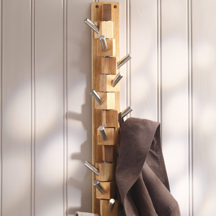 The rustic oak door hangers has 13 hooks in stainless steel. It attaches to the vertical, which allows optimization of space. In addition, the attachment of the vertical hangers is a real asset in the sense that large and small find their place! So store becomes easier! Height 60cm