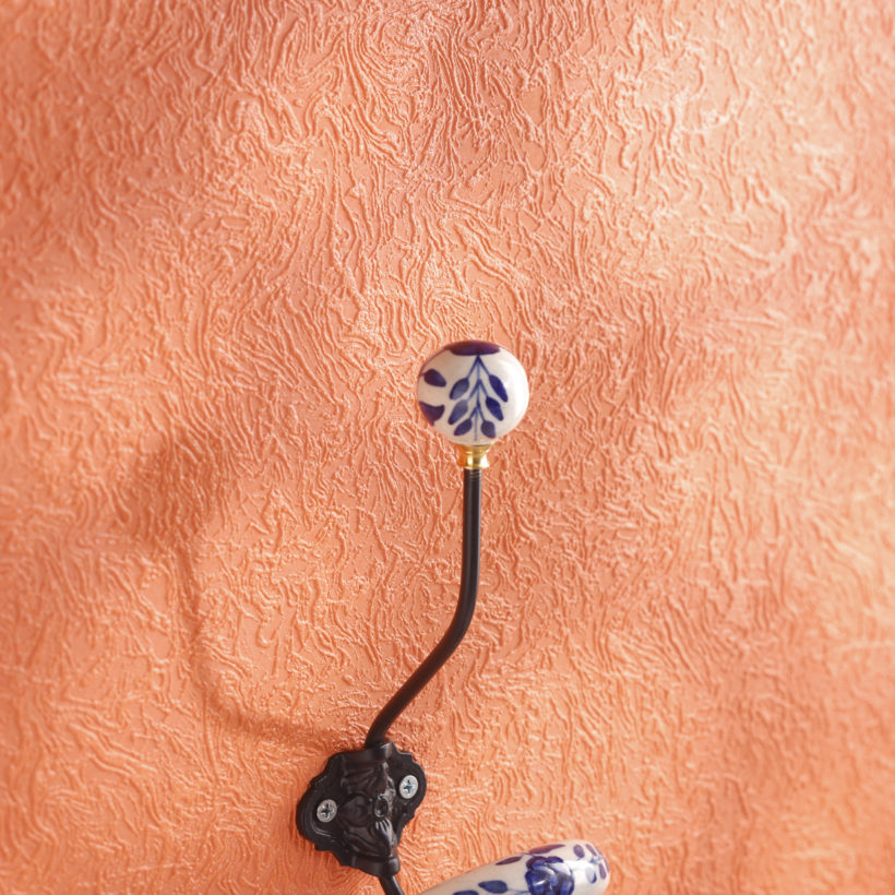 This hanger is a true object of decoration. Indeed, if you like the classic style, it will be perfect home. This coat will bring chic touch to your home: go ahead! Structure black with cast steel balls of porcelain Louis XVI 1 double hook Height 20 cm