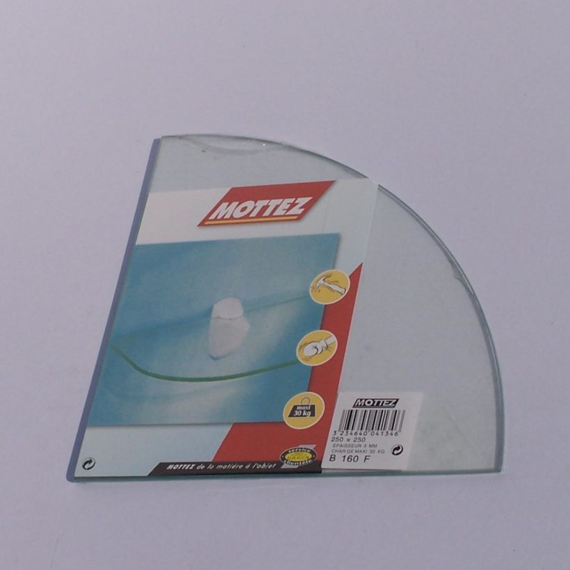 Transparent glass shelves 1/4 round 25 x 25 cm