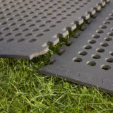 The holes in the mat allow water to pass through so that you can walk without getting your feet wet, the sames as sand and dust : the floor is always clean