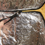 Aislamiento de 5 capas compuesto por 2 películas de burbujas (10 mm de diámetro) de aire termosellado entre 3 láminas reflectantes. Clasificación M1.