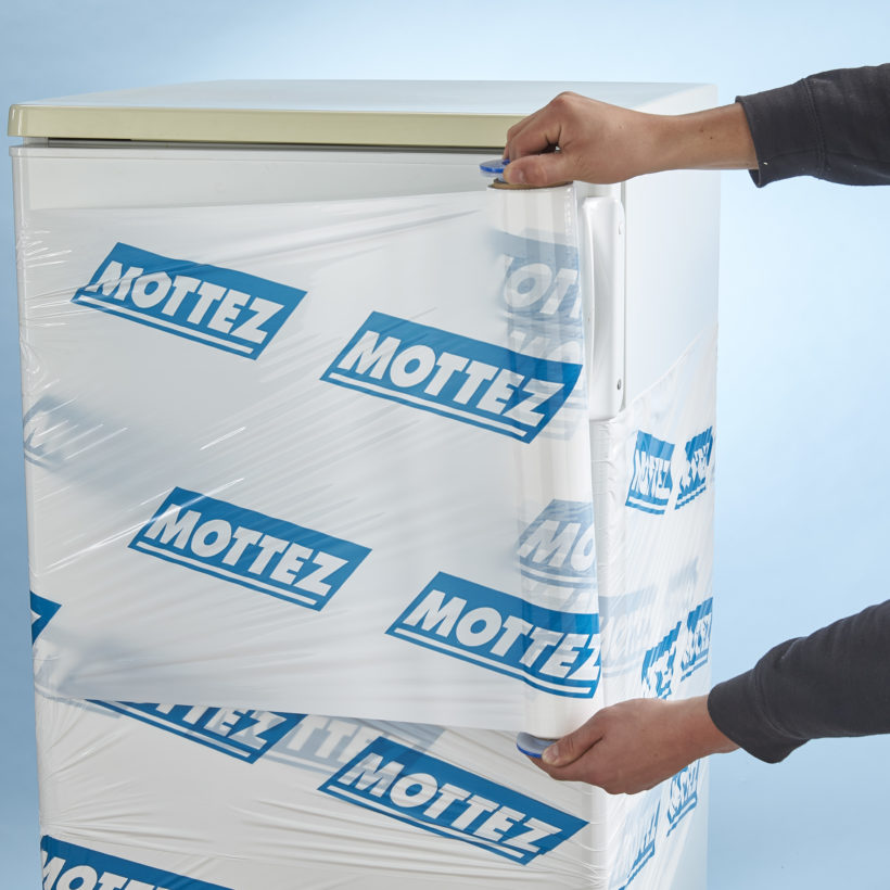 2 argollas con anillo de teflón giratorio en el interior para desenrollar un rollo de película estirable