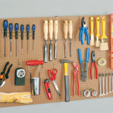 Kit pannello forato Isorel composto da un pannello isorel + 1 set di 40 ganci universali + 1 sacchetto di distanziatori + 1 barra portautensili.
