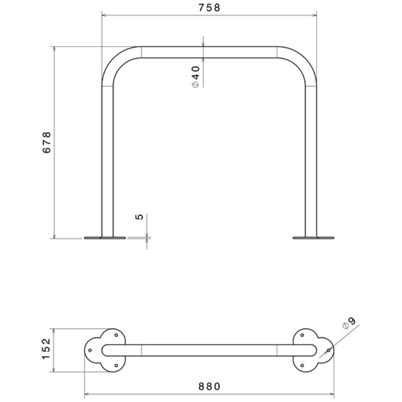 Sur platine Ø 152 mm, épaisseur 5 mm et trous de fixation Ø 9 mm