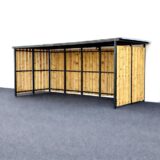 Cet abri allie esthétique et fonctionnalité, avec un design élégant qui s’intègre harmonieusement dans tous les environnements