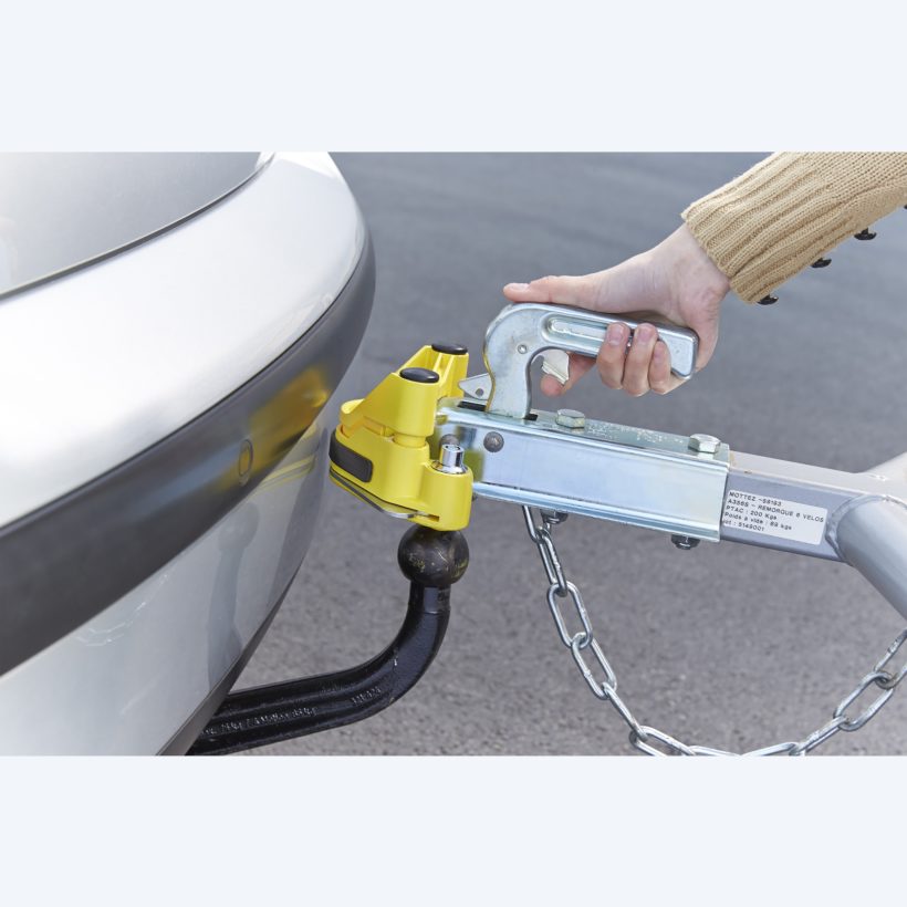Permet de protéger la tête d'attelage seule ou fixée sur la boule du véhicule contre le vol