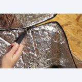 Matière : mousse isolante aluminisée épais 8 mm : 5 épaisseurs composé de 2 films bulles (Ø 10 mm d’air étanche thermolié entre 3 feuilles aluminium réflectives. Classification M1.