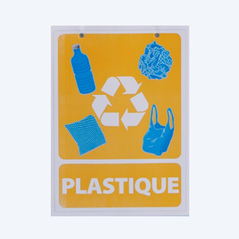 Lot de 3 panneaux tri sélectif se compose : 1 pour le plastique, 1 pour le papier et 1 pour les autres dèchets.