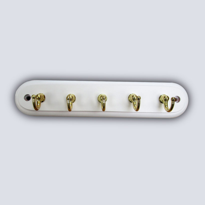 Porte clés – porte serviettes 5 crochets en zamac – coloris blanc – crochets dorés