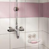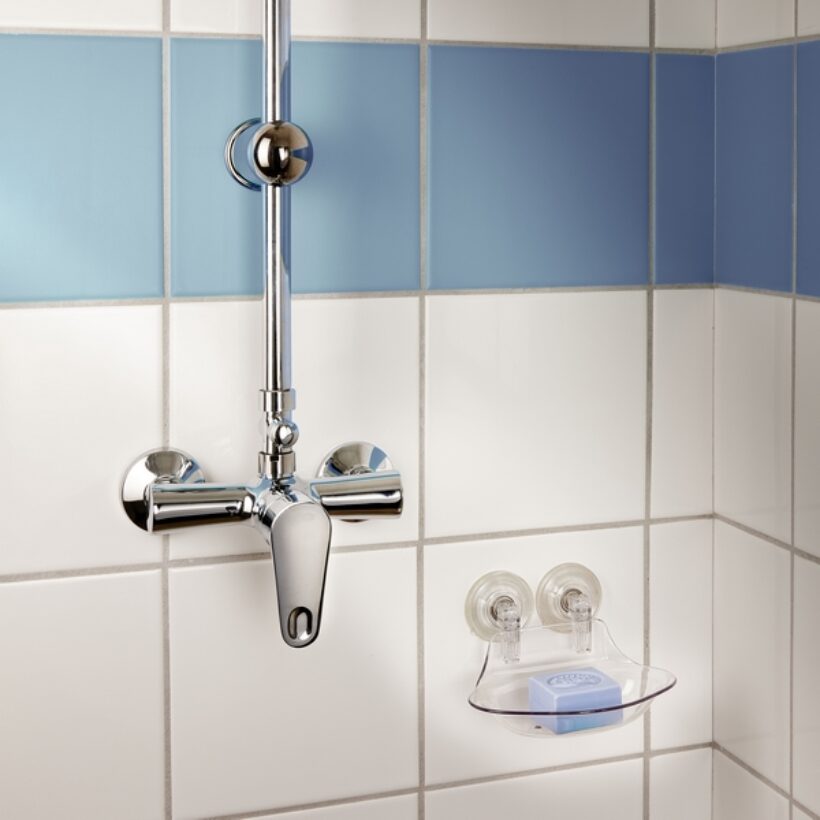 Équipé de deux ventouses robustes, renforcées par un adhésif additionnel permettant d’empêcher que l’eau (chaude) puisse passer sous la ventouse, il assure une fixation parfaite sans aucun perçage.