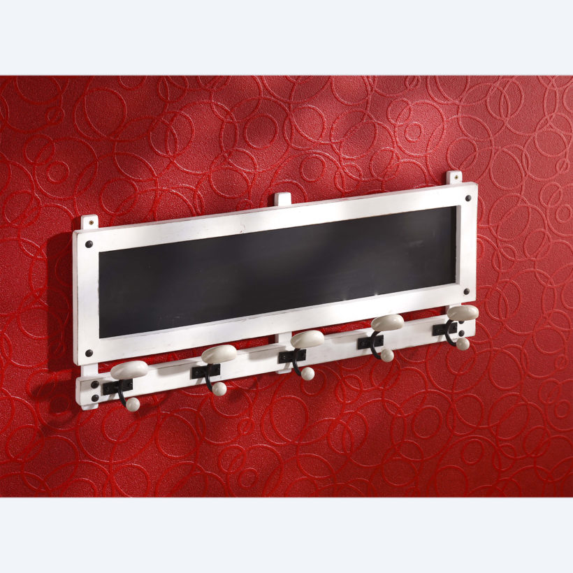 En plus d’être pratique, le porte manteau tableau noir est aussi très joli grâce à son cadre en sapin laqué blanc, et à ses 5 patères en porcelaine blanche.