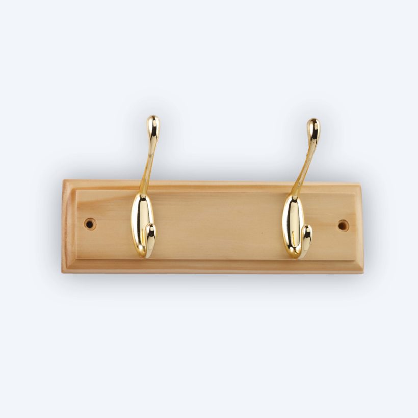 Portemanteaux 2 crochets en zamac sapin massif – crochets dorés