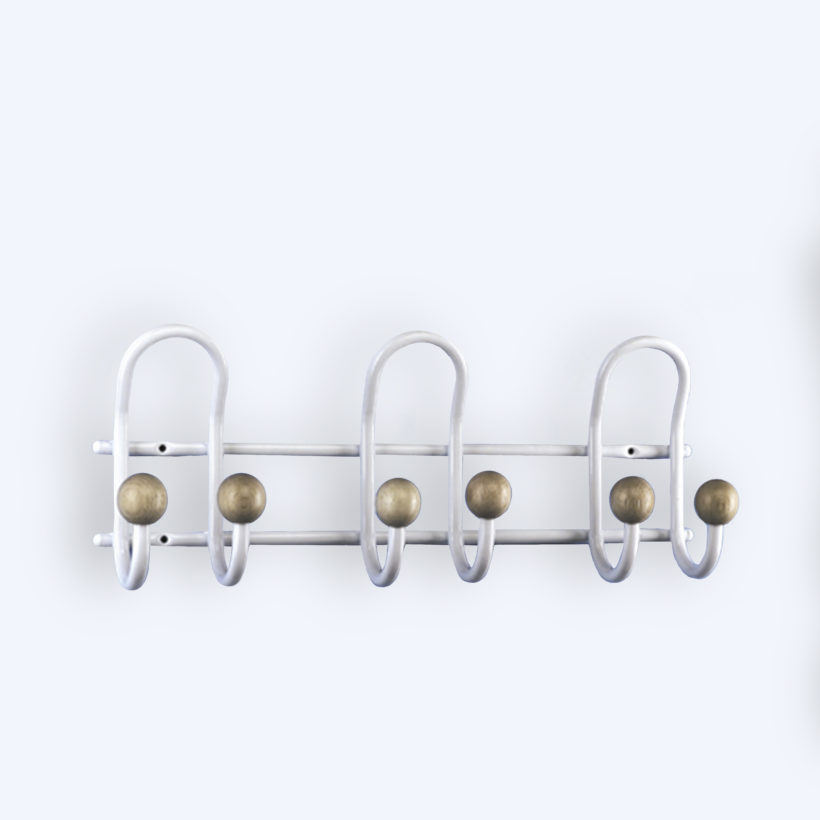 Portemanteaux 3 patères + 6 crochets Longueur 40cm - Coloris blanc