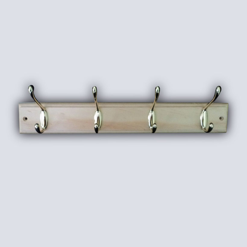 Portemanteaux 4 crochets en zamac – sapin massif – crochets dorés