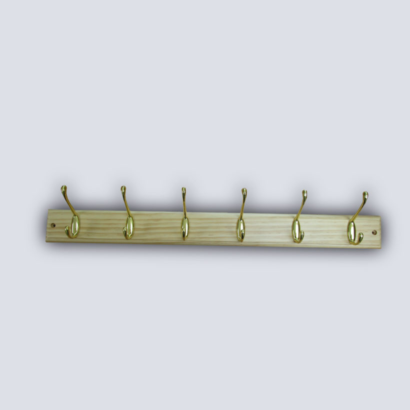 Portemanteaux 6 crochets en zamac – sapin massif – crochets dorés