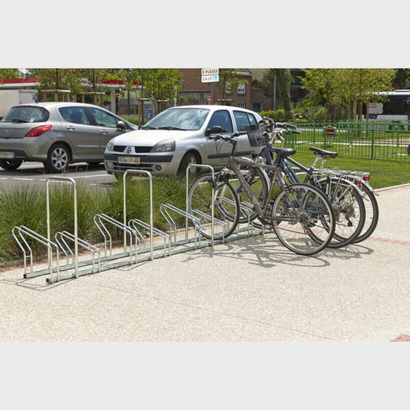 Râtelier Hollandais sur 2 niveaux pour 8 vélos avec arceaux antivol
