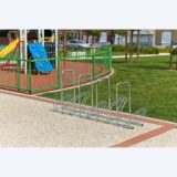 Râtelier sur 2 niveaux pour 5 vélos Modèle Hollande côte à côte avec arceaux antivol