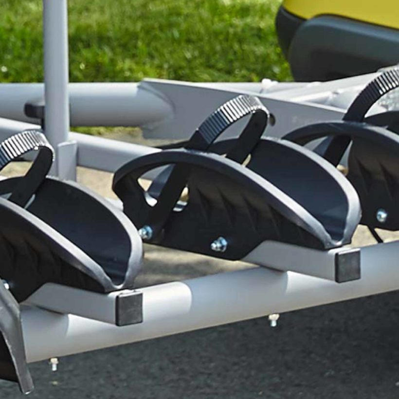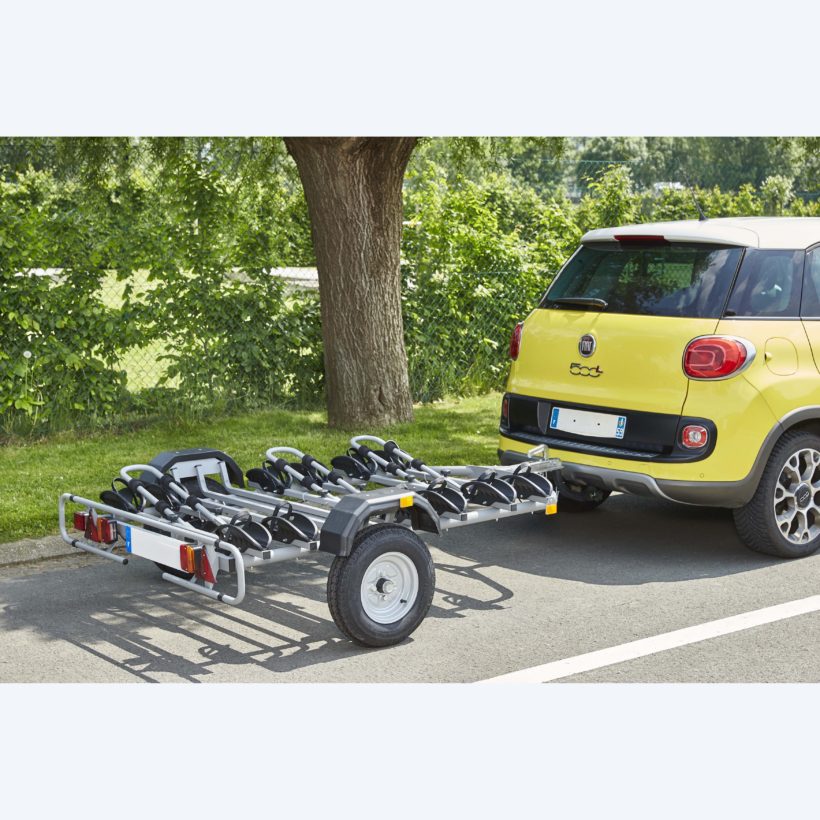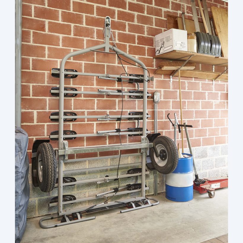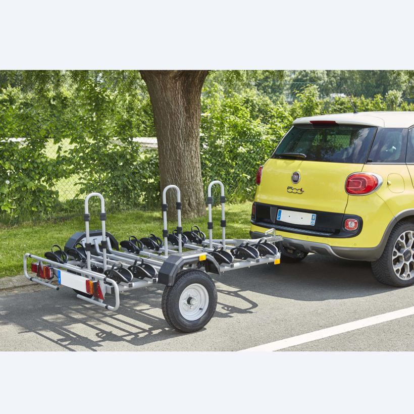 Les bras de support peuvent être abaissés pour faciliter le rangement de la remorque porte-vélos. Il est également possible de l’utiliser pour transporter des valises, des colis…