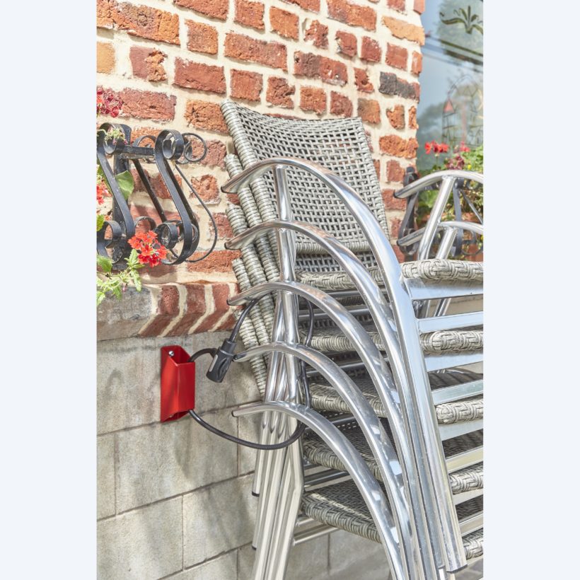 Point d’ancrage en tube acier (à fixer avec 2 vis et chevilles non fournies)Livré avec un câble antivol avec clés (pour sécuriser cycles, tondeuse, outillage, poussette, etc.)