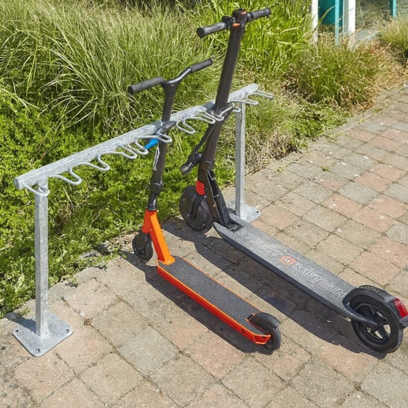 La forme en V des supports mat de trottinettes permet un blocage efficace des trottinettes.