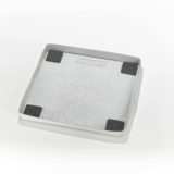 4 patins sont en caoutchouc recyclé : 100 x 100 x 5mm